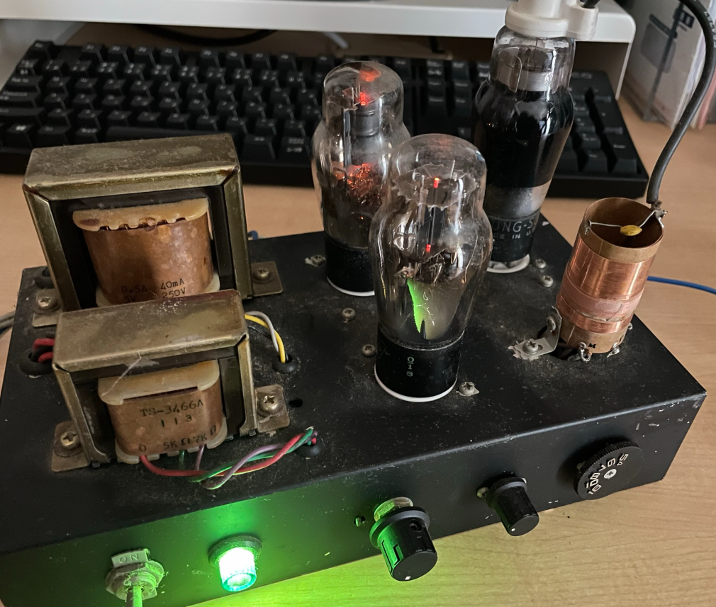 6C6での再生検波に42で出力増幅していました。電源部の整流もST管で行っています。