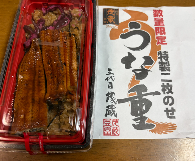 「ぷろむなーど杉田商店街」をよく通るのですが、「茂蔵」というお店の店頭に置いてある「数量限定 特製二枚のせ」がいつも気になっていました。先日思い切って奮発して買ってみました。といっても税抜きで1000円弱です。うなぎの味付けもよかったですが、ご飯がとてもよく味付けされていました。一枚のせもありましたので、興味のある方はどうぞご賞味ください。