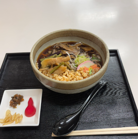 きっと、バス停わきの食堂でお昼をとるようにとのことなんでしょう。「天狗そば」をいただきました。